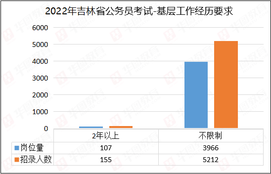 根据吉林华图的统计,今年招录岗位中,不限制基层工作经历的岗位为3966个,共5212人,占总人数97.1%,对应届生来说是振奋人心的消息。