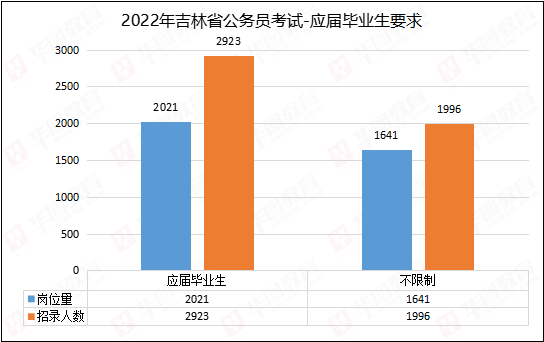 根据吉林华图的统计,2022年吉林公务员招录岗位中,49.6%的岗位要求应届生,招录计划数为2923人,占总人数51.6%。对于受疫情影响尚未就业的应届生而言,这是利好消息,无疑为递来一支橄榄枝。毕竟相较而言,应届生岗位竞争压力相对较小,有更高的上岸率。
